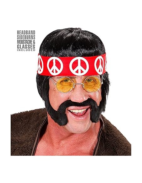 Carnaval Disfraz Hippie Set que Consiste En Peluca, Barba, Gafas, Cinta.
