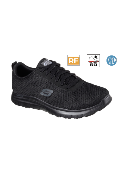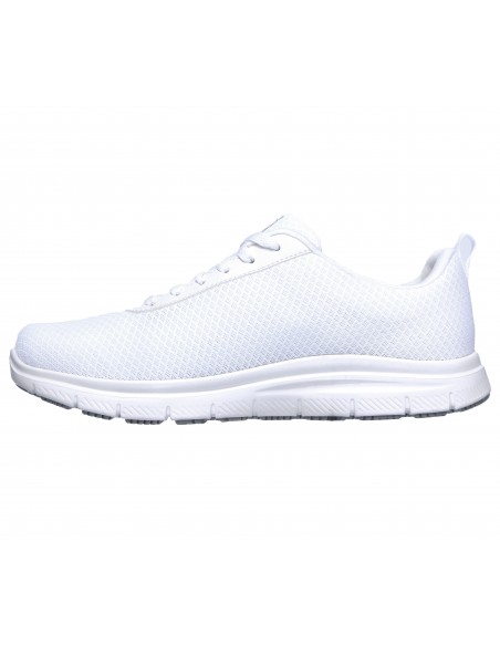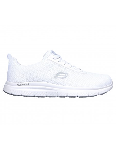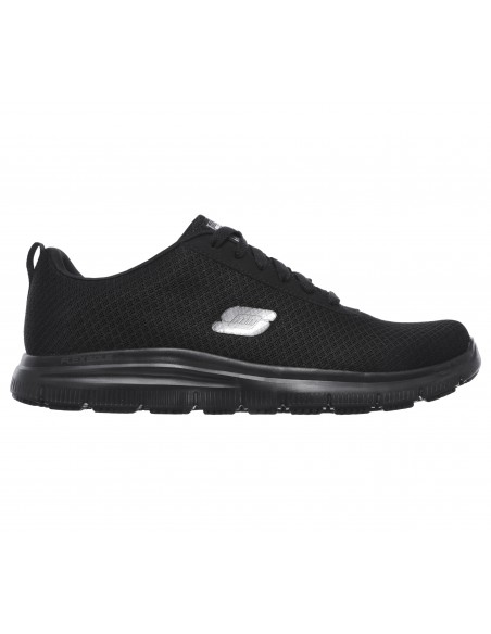 Parte superior de tejido sintético y malla en una zapatilla deportiva casual con cordones, detalles de costuras, suela antideslizante perfecta para el trabajo y plantilla SKECHERS Memory Foam.