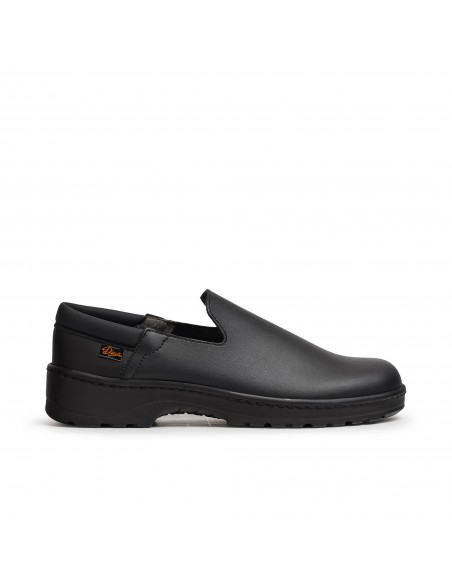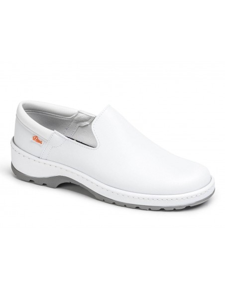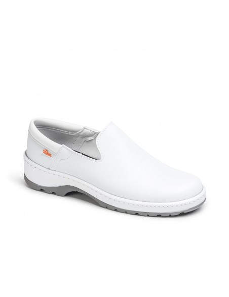 Zapato antideslizante de gran coeficiente en seco y húmedo con resaltes acanalados en la suela para facilitar la evacuación de líquidos evitando el deslizamiento en suelos mojados, corte de microfibra D’COVER OEKOTEX ® transpirable y lavable a 40º con acolchado en el talón para evitar que el zapato se descalce al caminar o en posturas de flexión extrema, protegiendo el pie de rozaduras, plantilla interior acolchada de espuma de poliuretano con tratamiento antibacterias, fabricado mediante cosido de seguridad suela-corte antibacteriana para asegurar la unión de las piezas al someterlos a lavados en caliente.