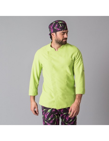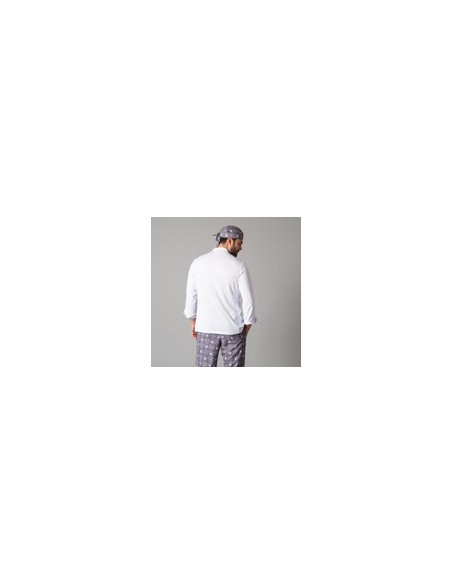 La chaqueta de cocina de hombre VIDAL presenta un diseño elegante con manga larga, cuello mao, y cierre cruzado mediante botones de presión ocultos. El cuello mao le brinda un toque distintivo de estilo mientras que los puños vueltos añaden comodidad y un ajuste seguro.