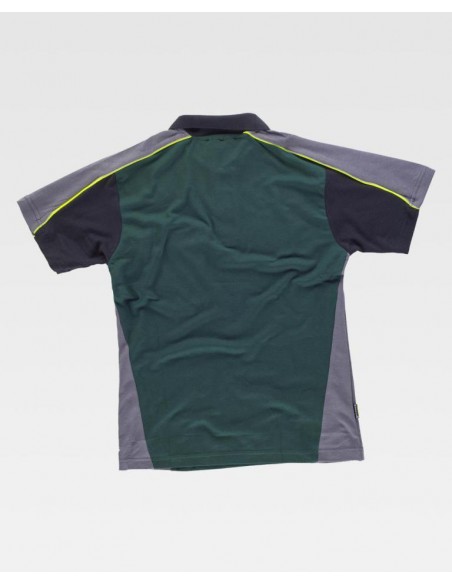 - Polo tricolor de manga corta en tejido piqué con vivos de alta visibilidad.