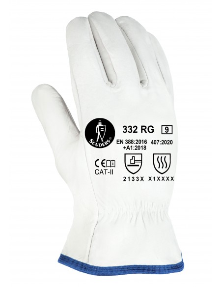 Pulgar en ala. ● Elástico interior de ajuste en la muñeca. ● Ribetes en nylon – distintos colores dependiendo de las tallas. ● Buenas prestaciones al desgarro y a la penetración (Nivel 3), mayor durabilidad. ● Aptos para riesgos térmicos – resistencia al calor por contacto (Nivel 1) a 100º C durante ≥ 15 s. ● Disponibles con cartón para expositor.