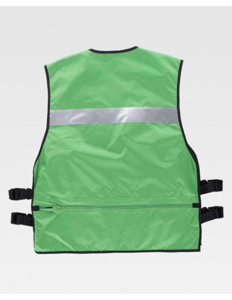 Chaleco en tejido Oxford con ajustes laterales y cintas reflectantes.