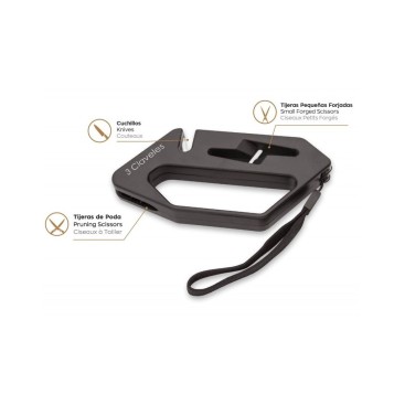 Afilador de mano 3 Claveles para cuchillos y tijeras. Mango ergonómico, fácil de usar y buena sujeción. Con este afilador puede afilar, cuchillos, tijeras y tijeras de poda.
