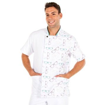 Blusa unisex abierta cierre botones ocultos en tejido microfibra y motivos gafas