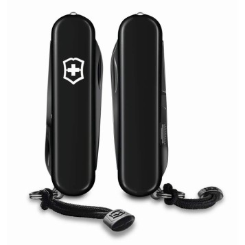 - FUNCIONES: Navaja de bolsillo con 8 funciones, fabricada en Suiza Hoja pequeña, destornillador 2,5 mm, regla (cm), regla (pulgadas), tijeras, LED, anilla, birlos, cordón