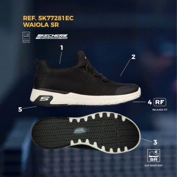Dales a tus pies la comodidad que necesitan para superar la jornada laboral con Skechers Work Relaxed Fit: Marsing - Waiola SR. Modelo de trabajo antideslizante con parte superior de malla y tejido sintético, cordones elásticos decorativos, suela antideslizante y plantilla Skechers Air-Cooled Memory Foam con amortiguación.