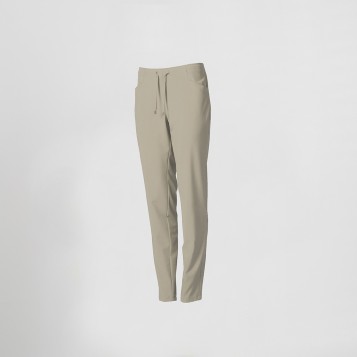 Pantalón sanitario para mujer en microfibra elástica 360 con tratamiento antibacteriano. Diseño semi ajustado con bolsillos tipo tejano y cintura ajustable. Cómodo, transpirable y resistente, ideal para uso profesional.