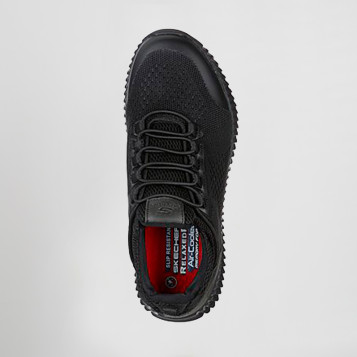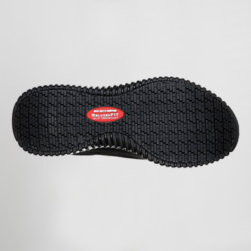 La suela antideslizante de nivel SR, testada en baldosa y acero, es además resistente a hidrocarburos. Incluye plantilla Skechers Air-Cooled Memory Foam®, que aporta amortiguación, confort y frescura durante todo el día.