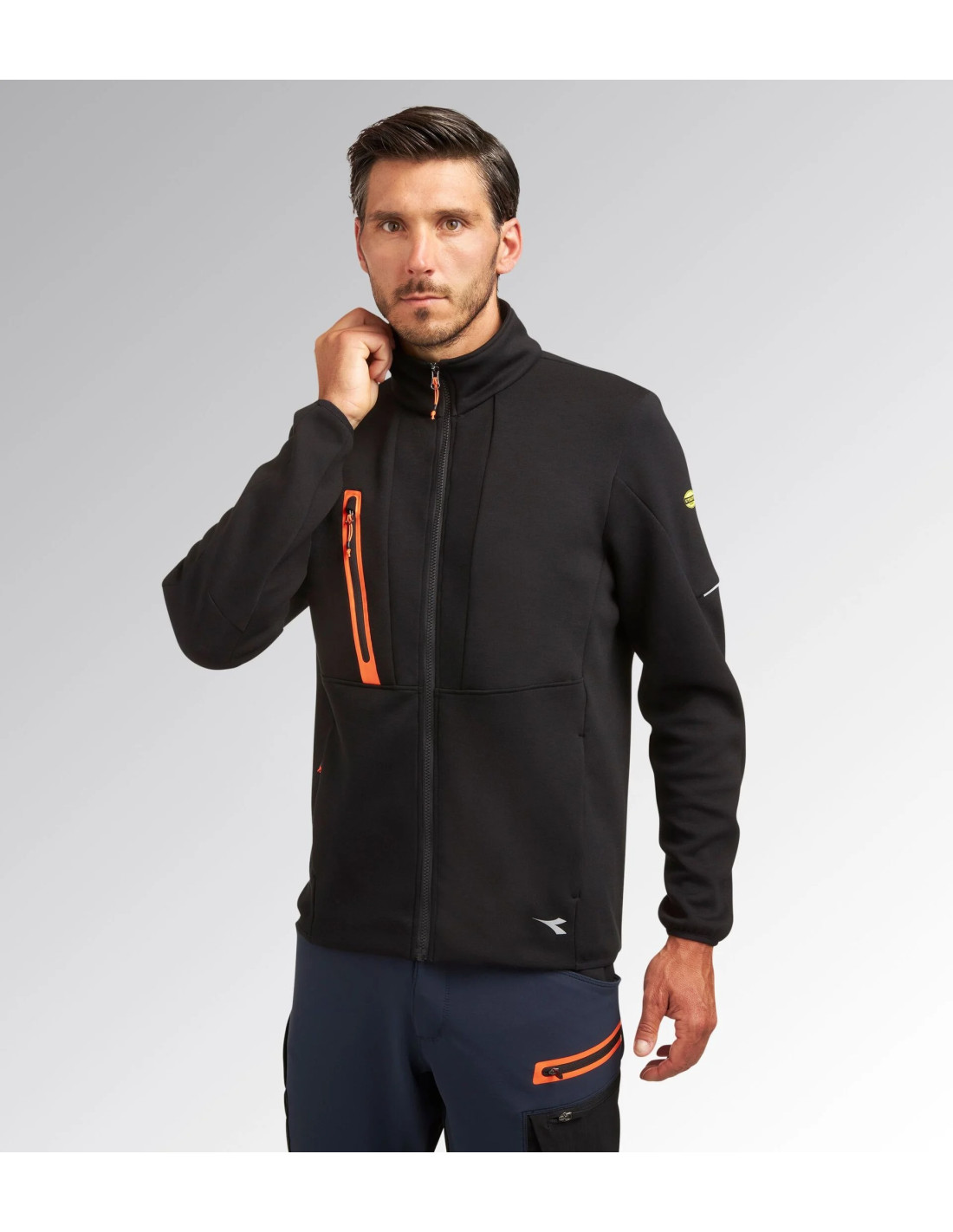 Sudadera Hybrid Tactic en color negro, confeccionada en neopreno elástico de alta densidad (330 g/m²). Con cremallera completa termosellada, cuello subido y detalles fluorescentes en contraste.