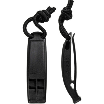 Silbato de señalización:Cordón de polioximetileno: 100% nailon.Dimensiones: 7 x 2 cm.Peso: 9 g. Silbato de señalización Duraflex® conforme a la norma EN ISO 12402-8. El silbato se puede fijar a un sistema MOLLE. Cordón corto.