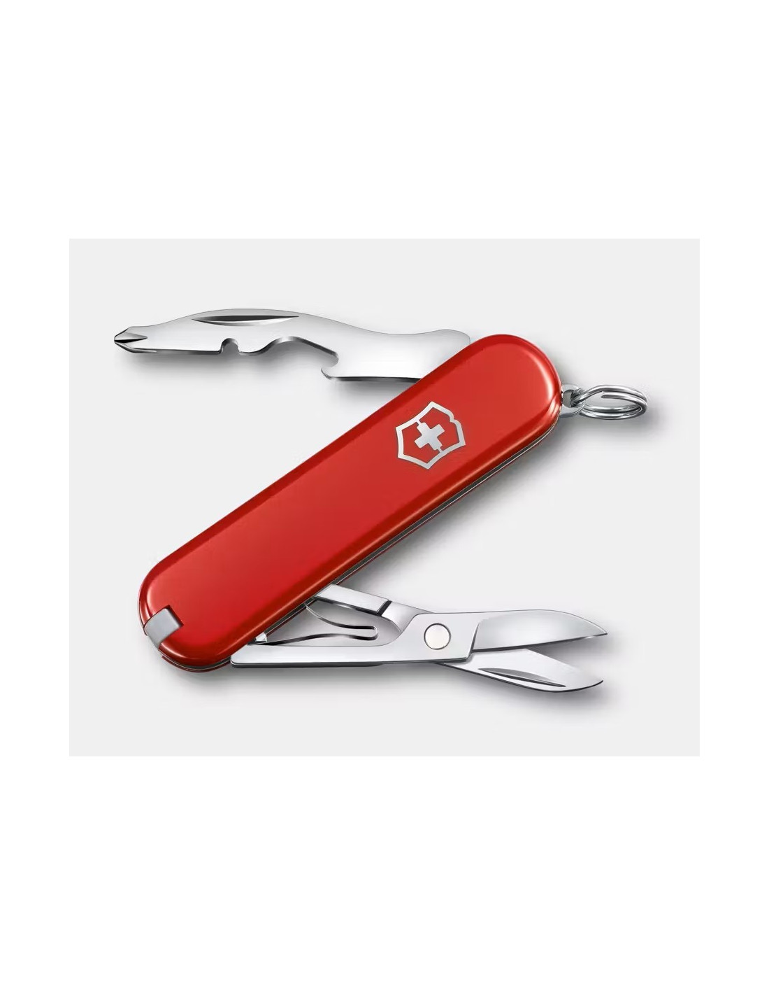 Incluye tijeras, un destornillador Phillips magnético y un abridor de botellas.